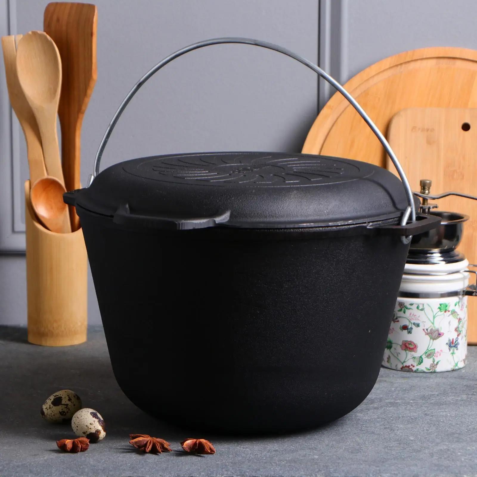8L Kazan Schwenktopf Gusseisen Kasan Deckel-Bratpfanne Campingtopf Kessel