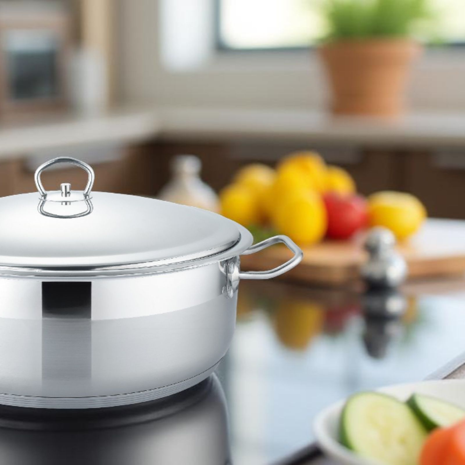 Kochtopf aus Edelstahl mit Deckel – Schmortopf / Gulaschkessel / Universaltopf für Induktion